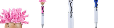 - Click-action ballpoint pen with smiley face, stethoscope-shaped clip and mop-top hair