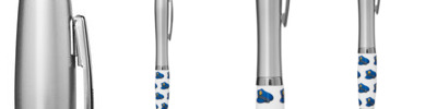 Retractable curvy barrel ballpoint pen with Jetline's exclusive stock art grip featuring our Emoticon happy face