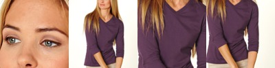 100% combed ring-spun cotton jersey • 5.5-oz. • top-stitched ribbed v-neck collar • taped neck • 3/4 sleeves • double-needle hemmed sleeves and bottom • softly shaped for a classic feminine fit • white is sewn with 100% cotton thread • Sizes: S-2XL