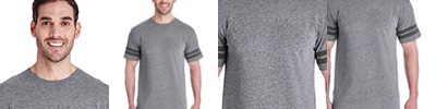 Distressed printed stripes on the sleeves give this tee a retro, sporty look.