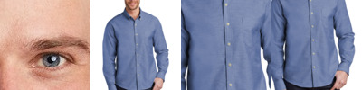 Washed chambray and off-white contrast stitching give this casual garment washed shirt an authentic, laid-back look. 3-ounce, 100% cotton slub chambray Open collar Back shoulder pleats Double chest pockets with buttons Rounded single-button cuffs