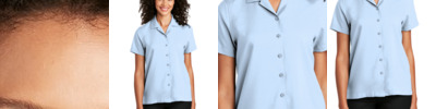 Comfort and performance meet classic corporate style. Odor-fighting, wrinkle-resistant and moisture-wicking, these looks have just the right amount of stretch to keep up with a busy day. 3.7-ounce, 93/7 poly/spandex Odor-fighting Wrinkle-resistant Moisture-wicking Open collar and neckline Longer tunic length Pearlized buttons Rounded adjustable cuffs Curved hem